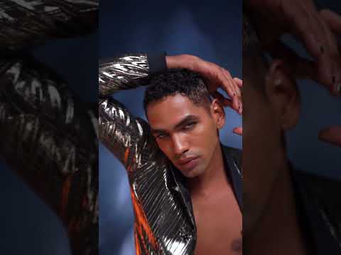 Metallic gold foil soft structured bomber style textured jacket worn with matching metallic gold foil textured wide bottom pants